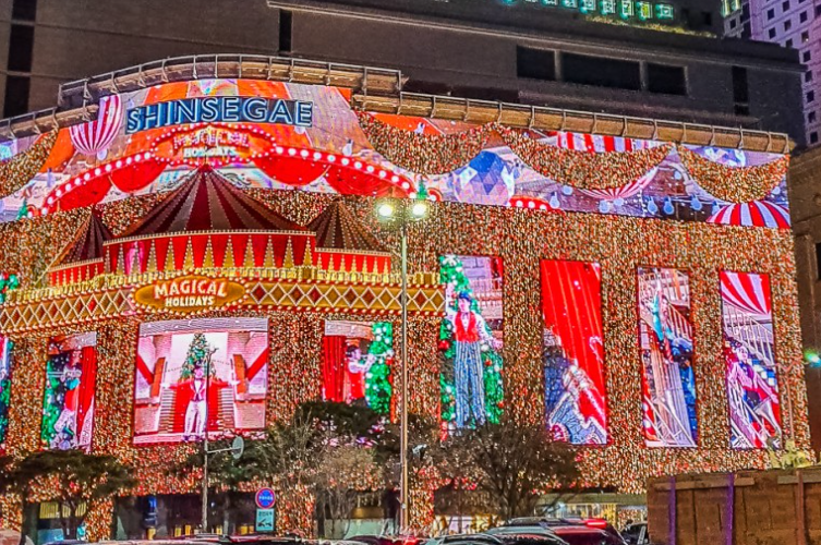 크리마스 분위기하면 또 빼놓을수 없는곳이 명동에 있는 신세계백화점 본점의 미디어 파사드 또한 빼놓을수 없습니다. LED조명과 함께 진행되는 공연은 계속해서 연속으로 진행되니 마음편히 지나가면서 구경하셔도 좋을것 같습니다. 백화점은 8시까지만 운영하지만 조명은 12시까지 켜져 있으니 밤늦게 구경가도 좋습니다.